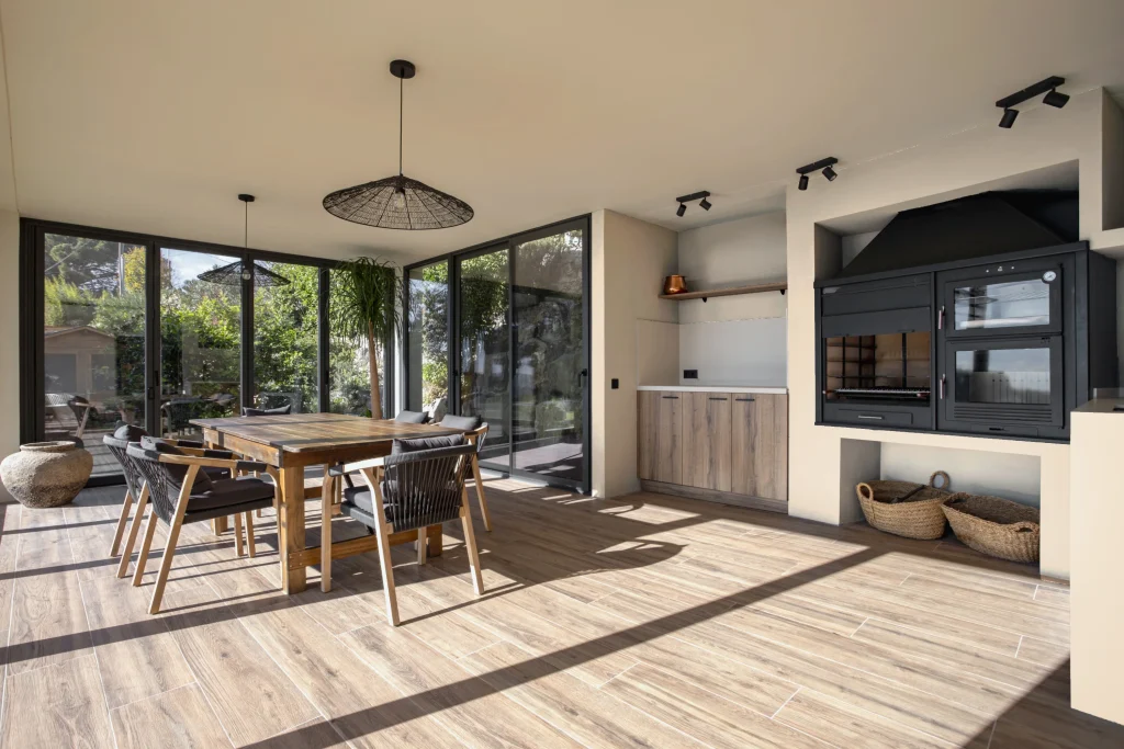 In a house in the Vallès, we’ve designed the perfect extension for a Catalan couple whose three children—grilling aficionados—come home at every chance for a barbecue or calçotada.